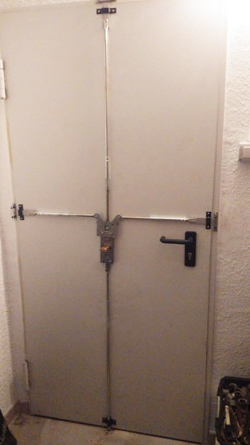 ¿Qué puede uno hacer para defenderse y proteger su trastero? Una opción es cambiar la puerta de chapa por otra puerta de hierro tipo cancela ciega,pero es poco aceptable porque es costoso y requiere obra de albañilería.Posiblemente además requiera el permiso de los vecinos.Por experiencia podemos afirmar que tampoco es necesario. La solución es añadir nuevas cerraduras que tengan efecto disuasorio. Y esto nos conduce a unos viejos conocidos de eficacia probada: los cerrojos.